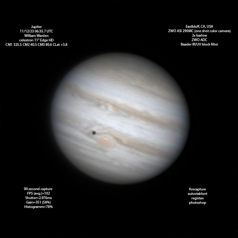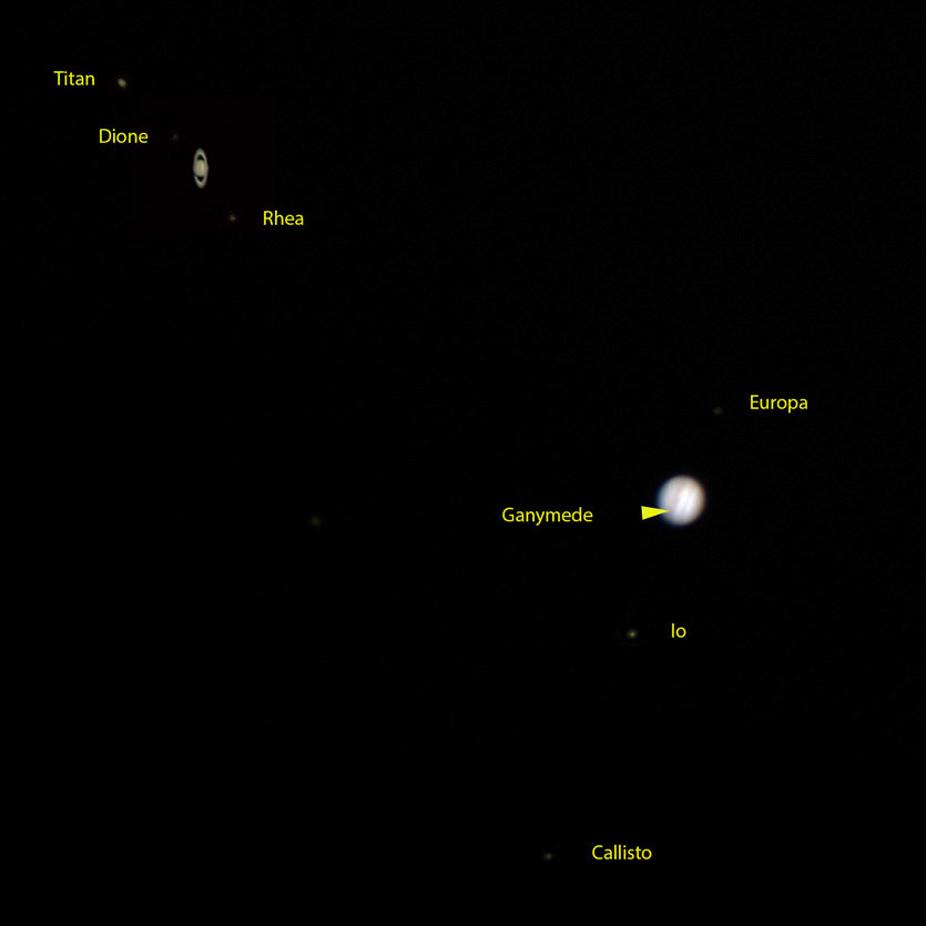Jupiter Io and Shadow, Ganymede transit 3/30/2014
